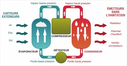 Fonctionnement d'une pompe à chaleur utilisant la géothermie :