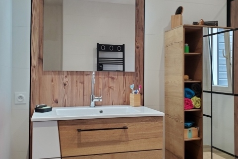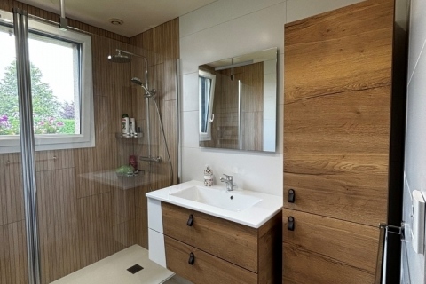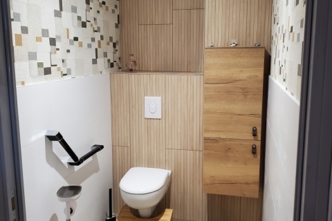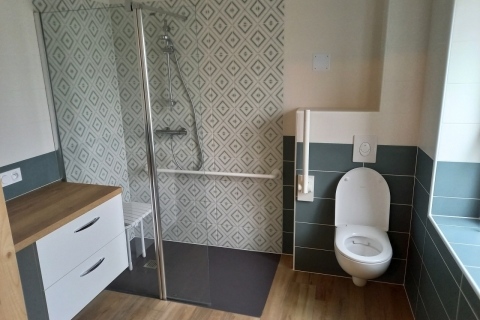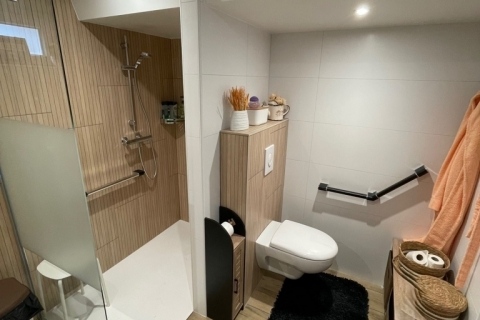 SDB AVEC ACCES PMR WC+MEUBLE ET DOUCHE